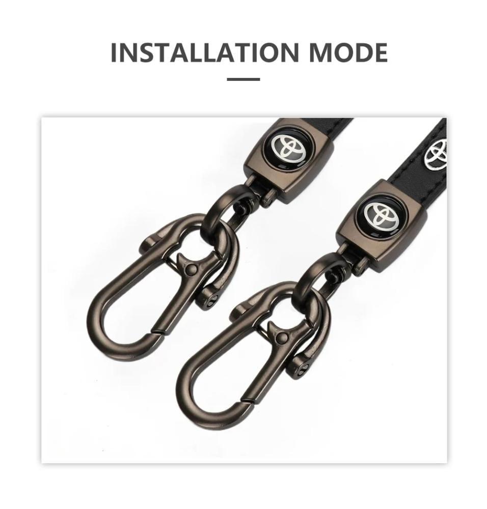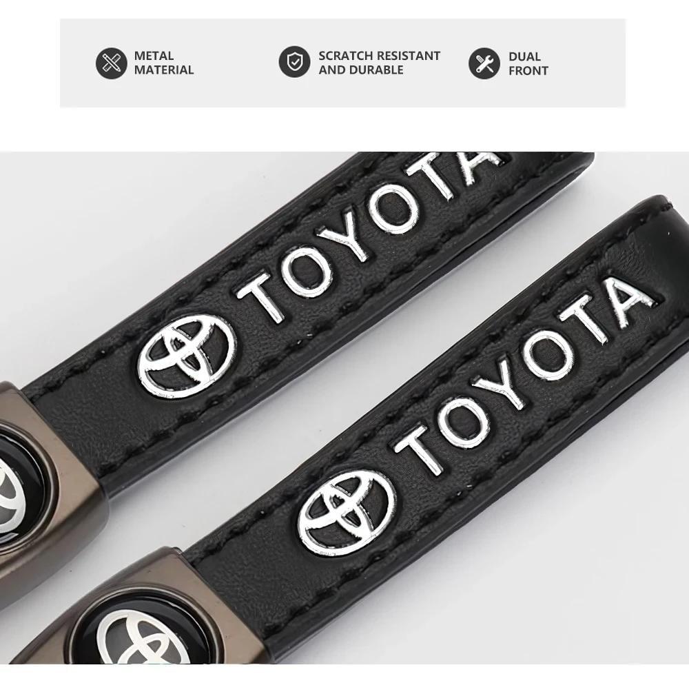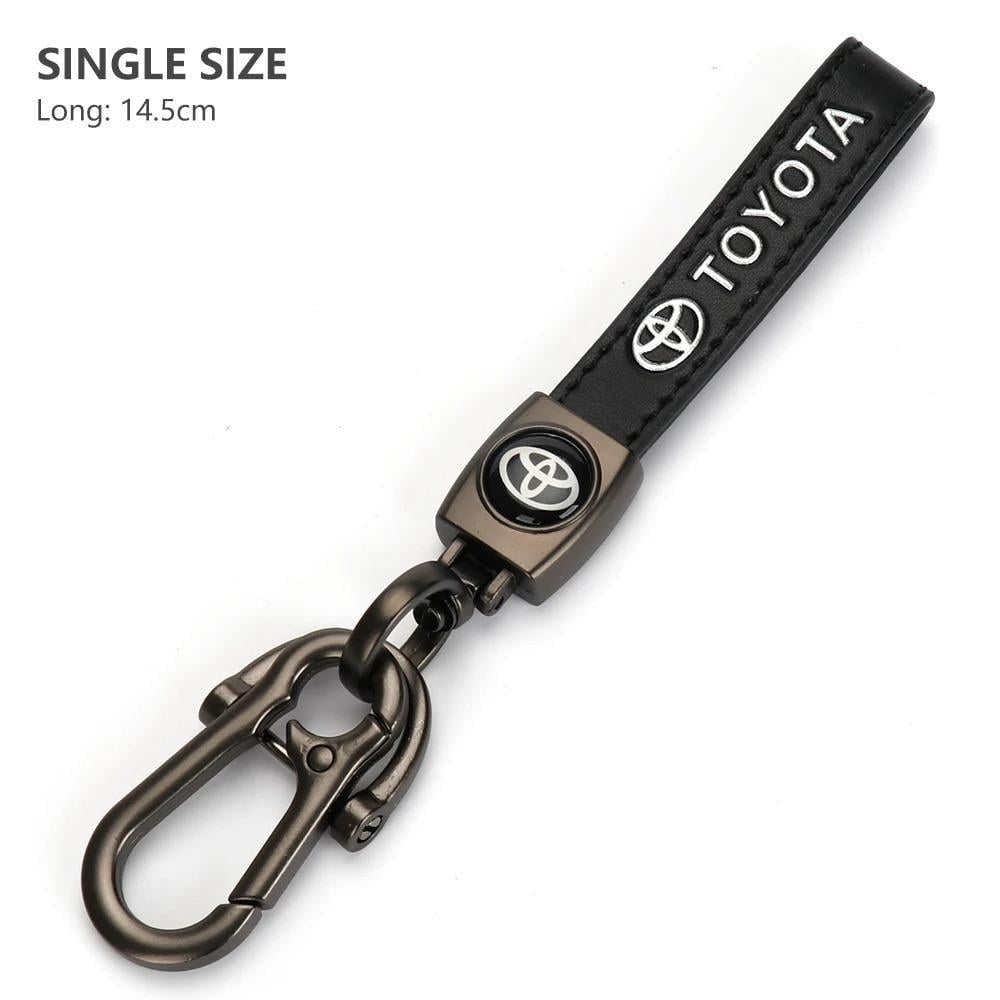سلسلة مفاتيح ثلاثية الأبعاد بتصميم معدني/جلدي لسيارات تويوتا، تشمل موديلات CHR، Rav4، يارس، بريوس، أفينسيس، كورولا، وكامري. تضيف لمسة من الأناقة والتميّز كمجموعة إكسسوارات للسيارة.